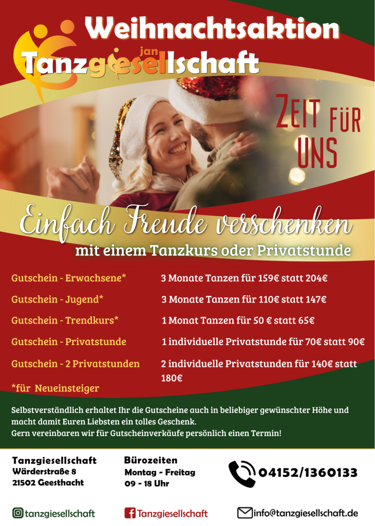 Liebe Tanzfreunde, wir haben großartige Neuigkeiten für euch! Ab dem 18.02. erweitern wir unser Kursangebot in Schwarzenbek und Geesthacht und bieten euch noch mehr Möglichkeiten, euer Können auf das nächste Level zu bringen oder neu zu beginnen!