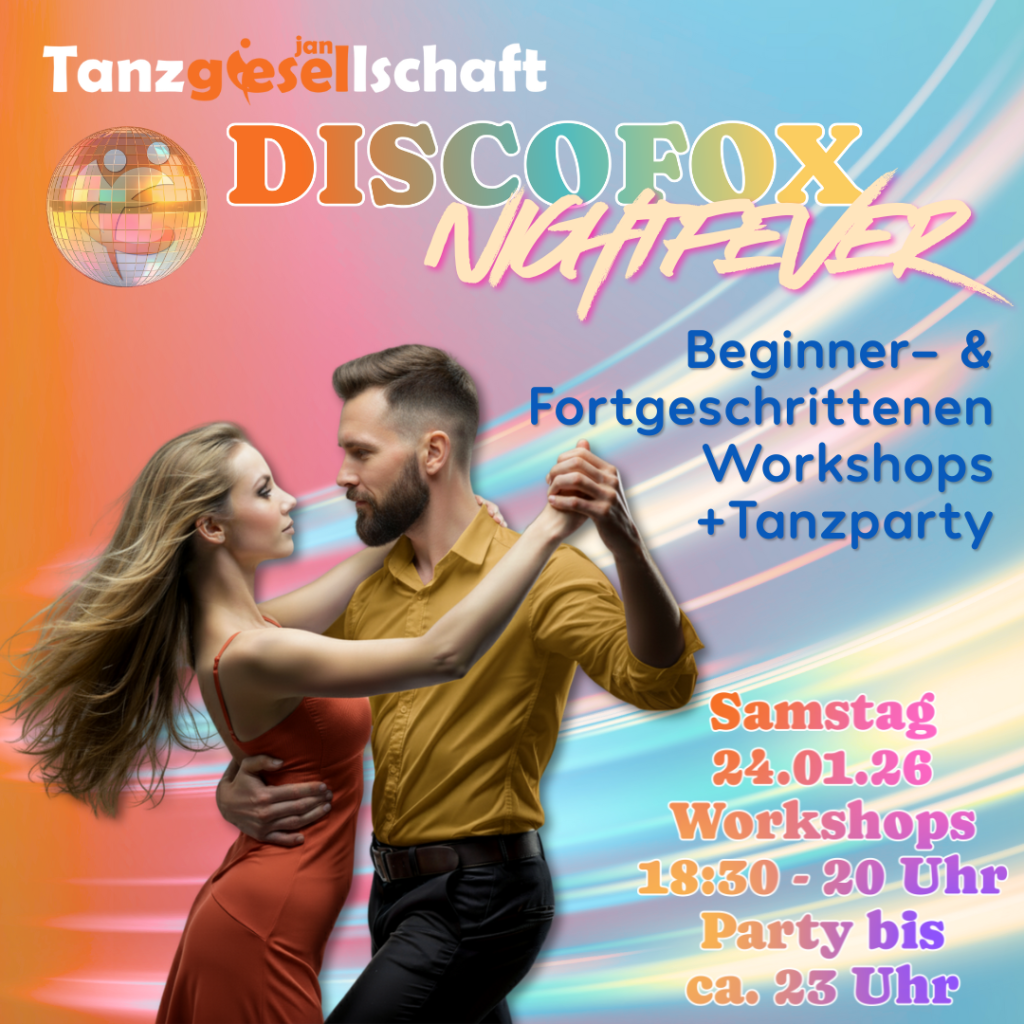 Ab 18:30 Uhr starten wir mit einem Discofox-Beginner-Workshop, perfekt für Einsteiger – und auch ein Fortgeschrittenen Workshop startet zur gleichen Zeit für Paare mit Vorkenntnissen. In 90 Minuten lernst du coole Drehungen, flotte Figuren und den richtigen Flow für die Tanzfläche.